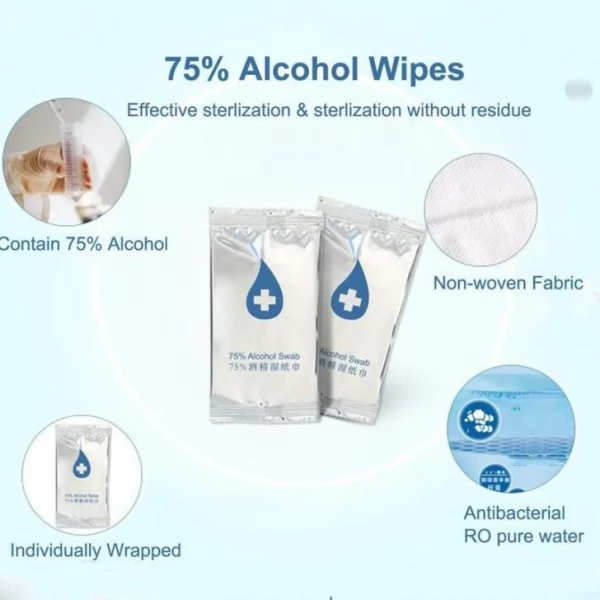 - 75% Alcohol Wipe: Safe and convenient. It is suitable for various purposes including personal hygiene, sanitation and disinfection.