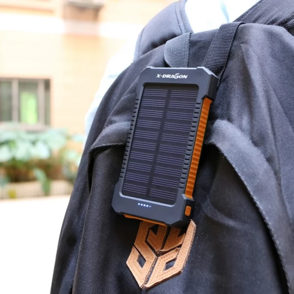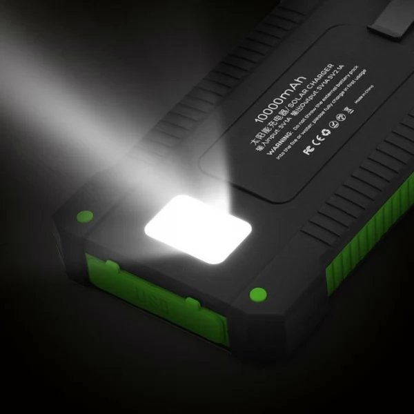 - Dual USB Solar Power Bank 10000mAh Universal Battery Charger Torch is an everyday power storage device with additional solar-charging function for emergency outdoor use.