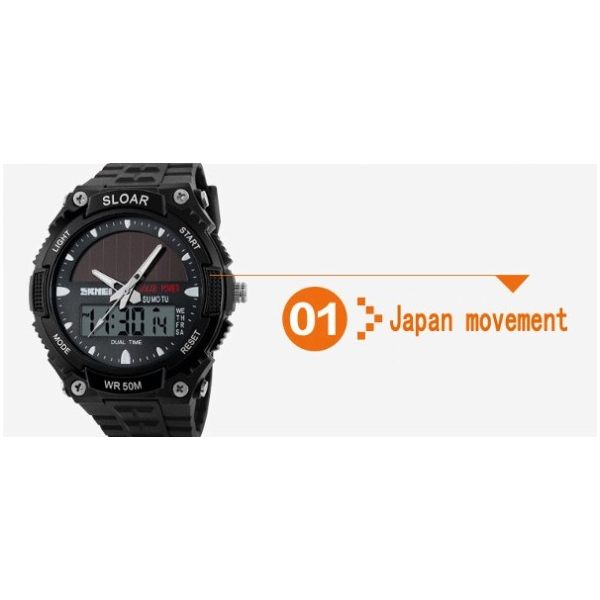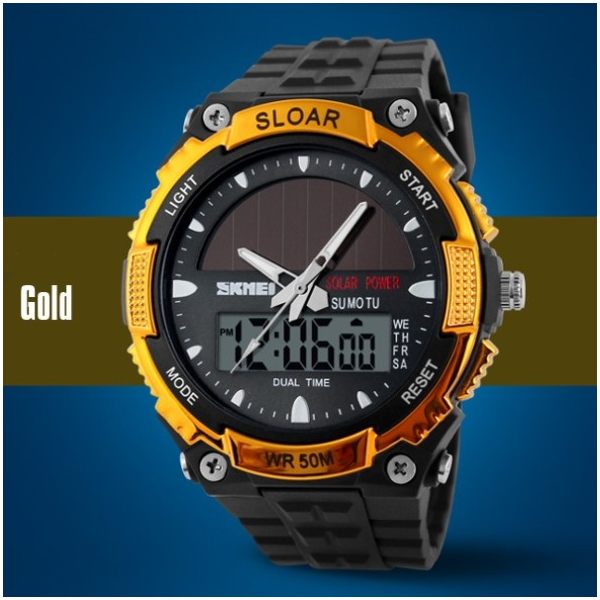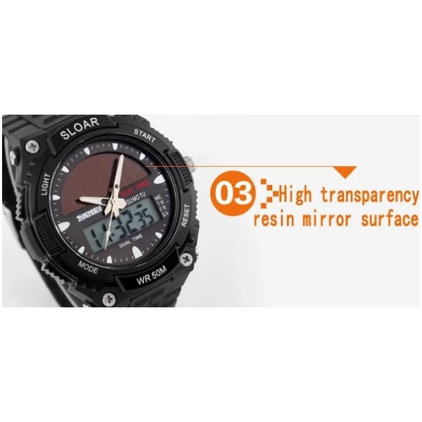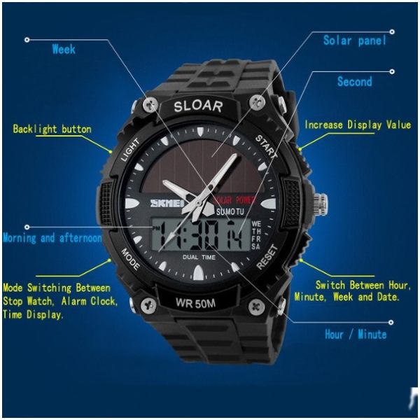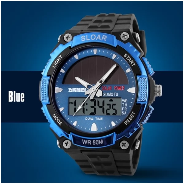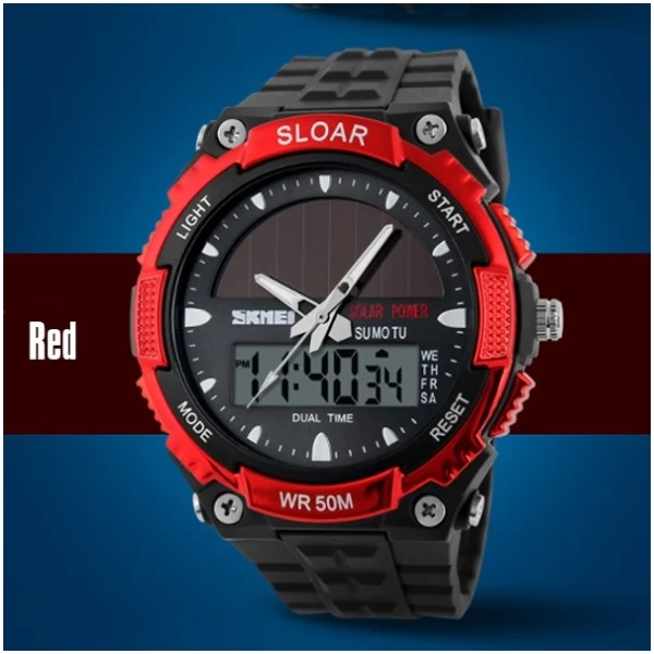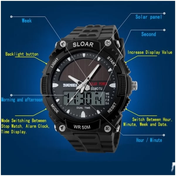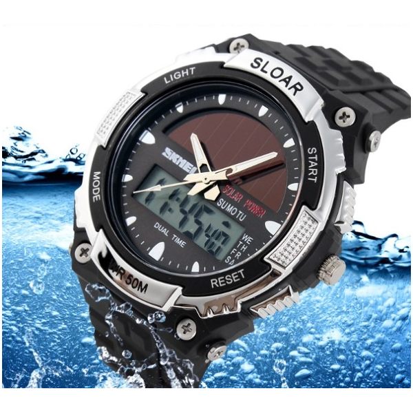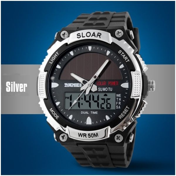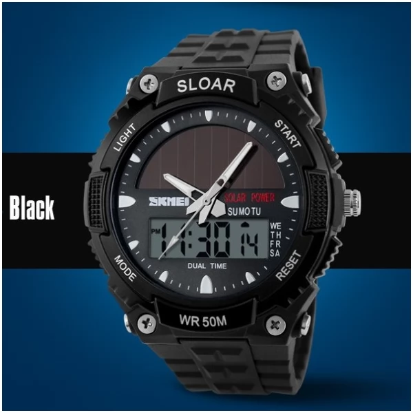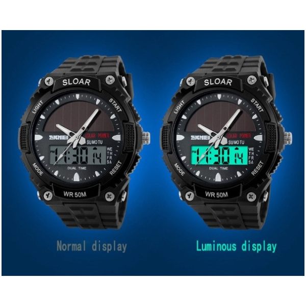 Solar Power Multifunctional Waterproof LED Dual Time Analog-Digital Watch Model SKMEI 1049