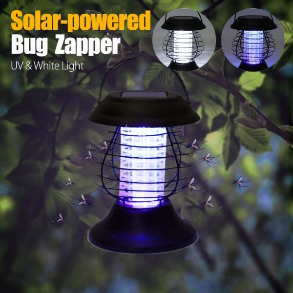 Outdoor UV Solar powered mosquito zapper and Insect killer LED lamp features: