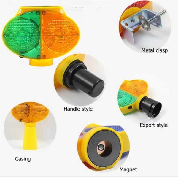 1. Metal Buckle Jaw type mount allows installing the light on guardrail, fence and construction signs etc.
