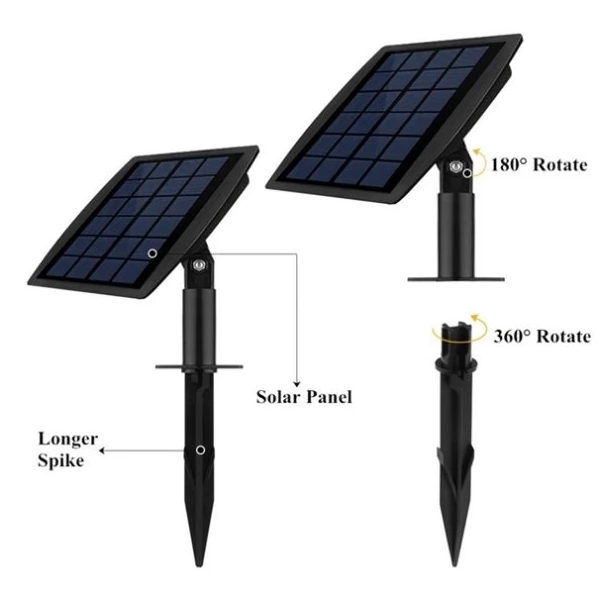- Adjustable angle of Solar Panel (up to 180 degrees) to improve the sun exposure and Spot light heads (up to 90 degrees).