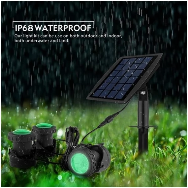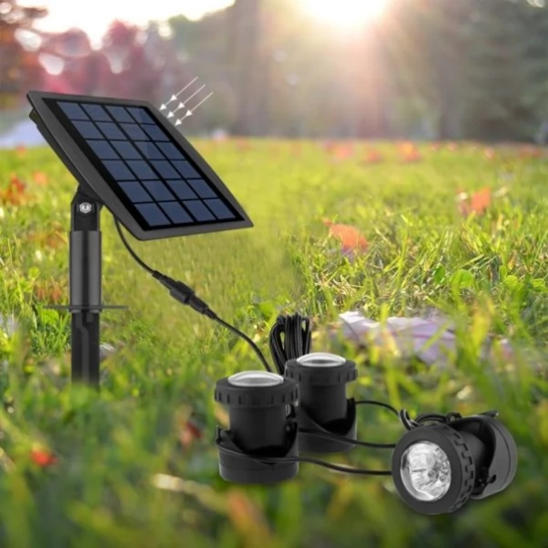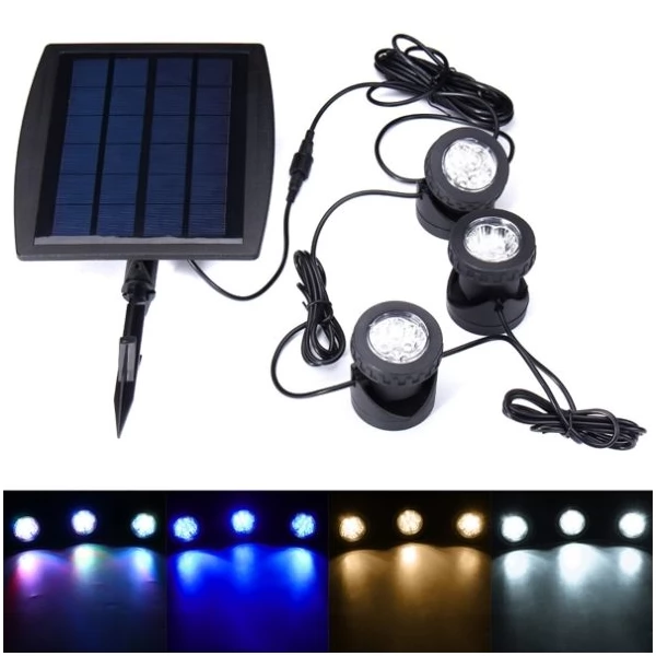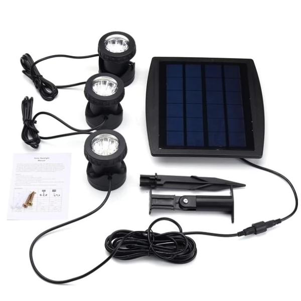 Outdoor Solar underwater LED pool light with three spotlight heads has the following features: