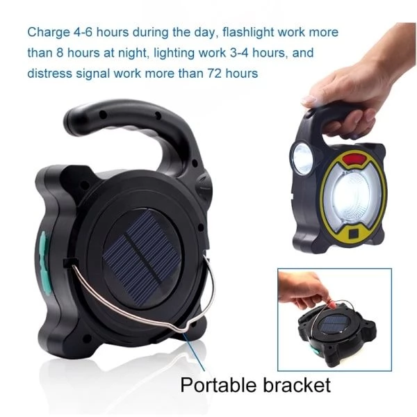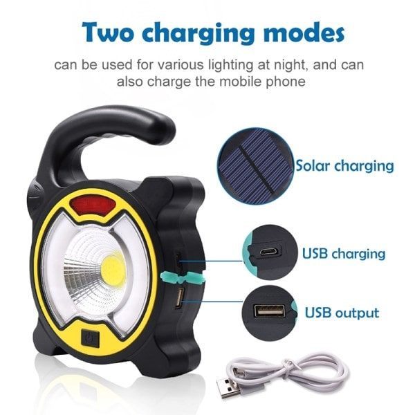 Multifunctional COB LED Emergency Solar Camping Light with USB Cable is a high-quality durable waterproof product with multiple features. Multifunctional lighting modes including emergency night light, working light, flashlight and distress signal light in combination with compact size and light weight make this portable lamp ideal for camping, travelling, beach night outs, car fixing, construction, fishing at night and emergency lighting for home, garden, garage, warehouses etc.