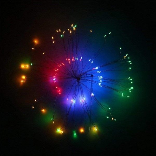 Firework 200 LED Solar Christmas Lights Decoration Starburst Hanging Garland is brand new high-quality DIY outdoor lighting product powered by Solar Power that does not require any electric wires or additional sources of energy. Built-in automatic daylight sensor will operate the LED Hanging Garland Lights on a regular basis by activating the Lights at night and put it into the charging mode during the day.