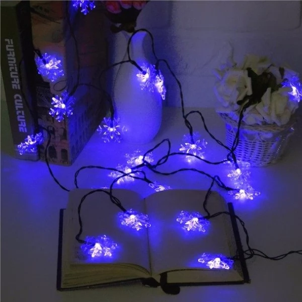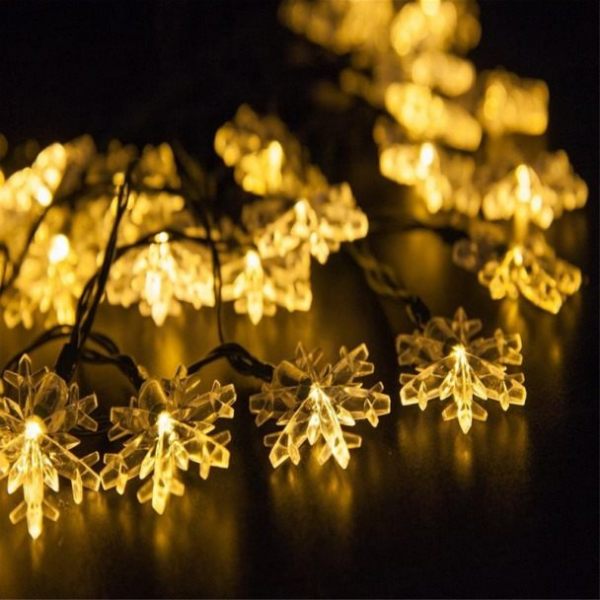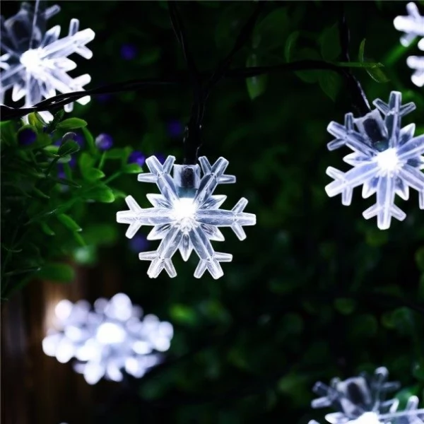 Snowflakes 20 LED Fairy Lights String Solar Christmas Tree Decoration is ideal for interior and exterior decoration around the house, garden, porches, patios, decks, balconies & verandas, side and backyard, aisles, entryway, path, fence etc. The product can be widely used in windows, shops, stages and other places, especially as a Garden or Christmas tree decorative LED lights to create a warm and romantic holiday atmosphere.