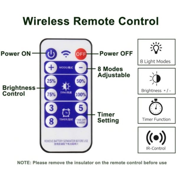 - Remote control with ~5m operational distance provides greater control over the unit including shifting the lighting modes, adjusting the brightness, and setting up the timer for performance.