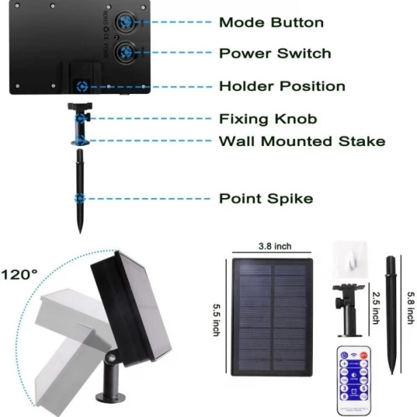 - Large Solar Panel with Improved energy-efficiency/ Enhanced 1200mAh Battery/ 8 Lighting Modes/ Up to 36h Lighting Time/ Remote Control with time function