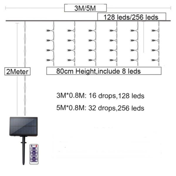 - 3m string with 16pcs of 0.8m drops, 128 LED | 5m string with 32pcs of 0.8m drops, 256 LED