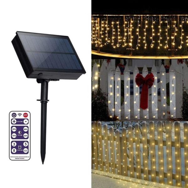 - Bright Solar Icicle Lights LED Curtain Christmas Decoration String Garland is a newly designed an energy-efficient grid-independent lighting products powered by solar energy for outdoor decoration.