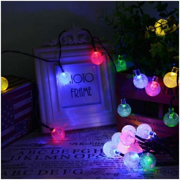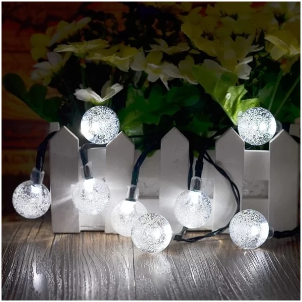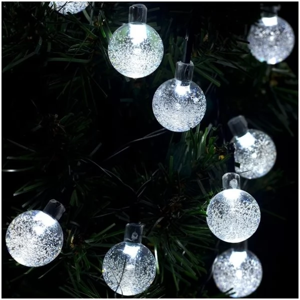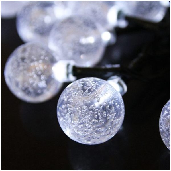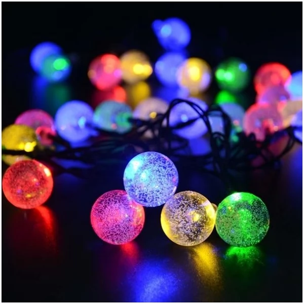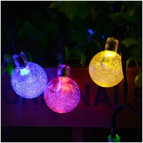 High quality Party Lights Cristal Balls Fairy String creates nice and warm holiday and festival atmosphere around the house, garden or backyard. 30 LED Ball shape bulbs String powered with Solar Power Green Energy and deos not require any electric wires or addition sources of power. Static or Flashing light modes helps to create unique environment without extra maintenance costs for electricity. Cristal Balls Fairy String has automatic light sensor which Turns the lights On automatically at night.