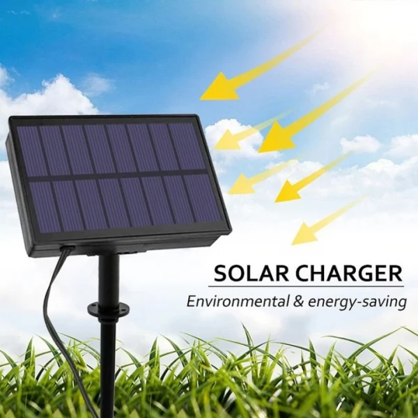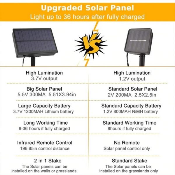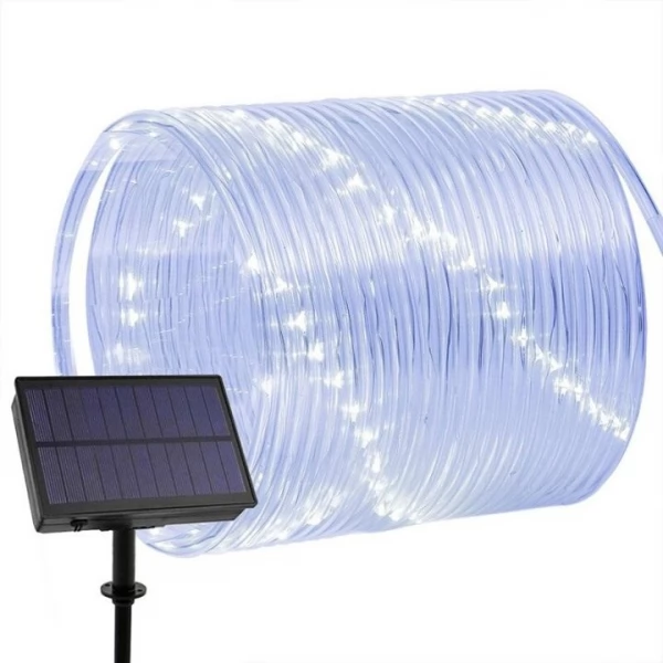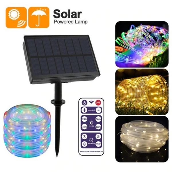 - A new design of well-known solar tube string light features improved and increased in size solar panel with a higher conversion rate that charges the battery several times faster than the old model.