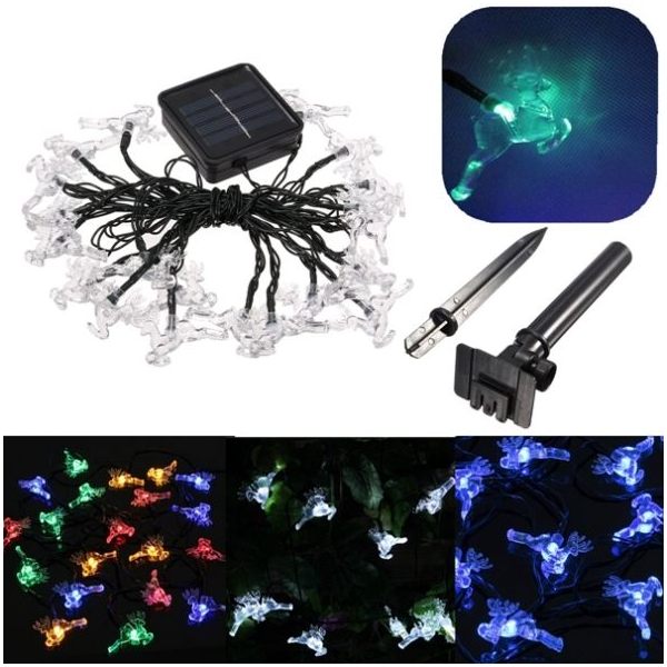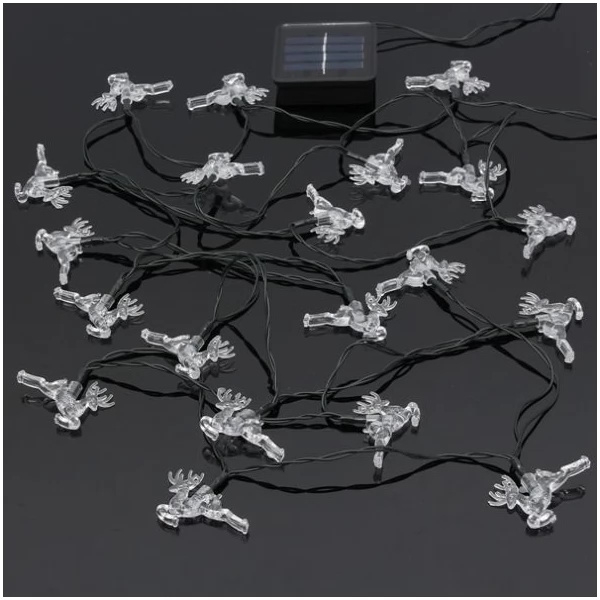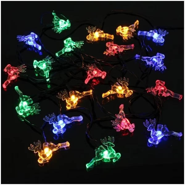 High quality Colorful Small Deer String Lights creates nice and warm holiday, romantic and festival atmosphere around the house, garden, backyard or at a special event. 20 LED Colorful Small Deer String powered with Solar Power Green Energy and does not require any electric wires or addition sources of power. Two lighting modes: Steady On and Flashing helps to create unique environment what best suit the event without extra maintenance costs for electricity. Comes with Switch On/ Off button.