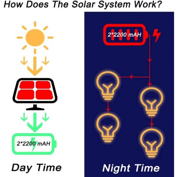 - Fully automated operation process with special built-in AUTO Light-control system for day/ night mode detection to automatically control switch between On and Off. The light will turn on in dusk to dawn.