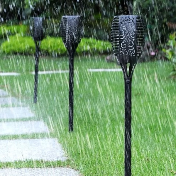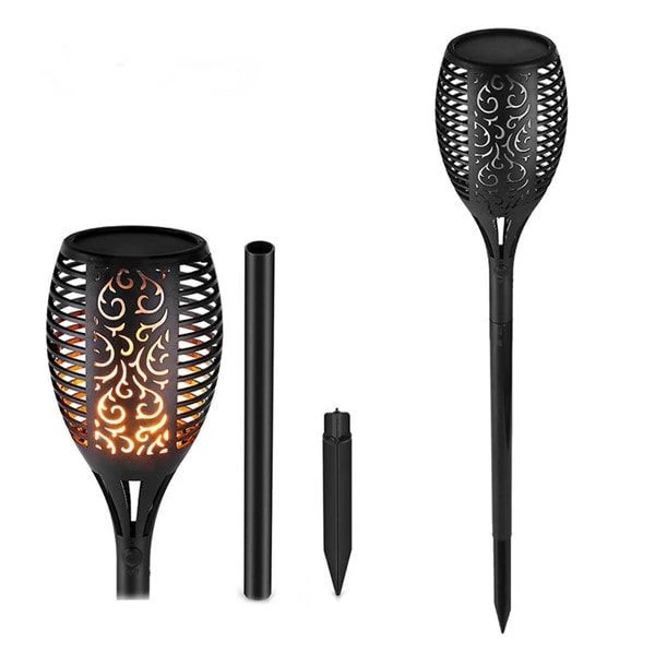 The solar flame light is an energy-independent DIY lighting product with three universal mounts for easy installation. The self-contained water- and weatherproof tiki torch lighting does not require wires and can be easily set up anywhere the sun shines including the home, garden, public park etc.