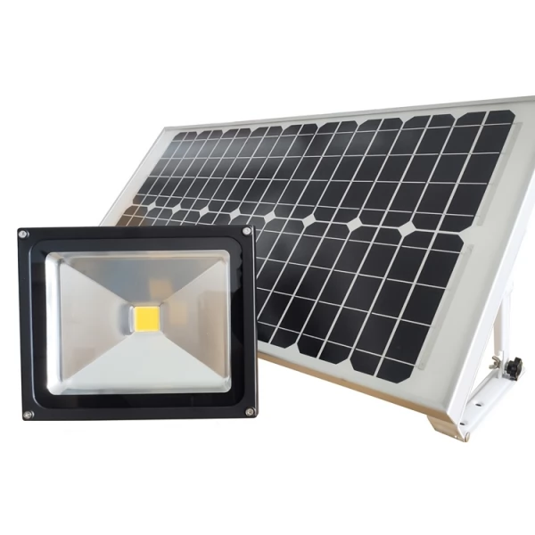 - Powerful 30W Solar Flood Light is fully solar powered lighting product. Solar Panel should be installed in a well-lit area where it can receive maximum straight sunlight during daytime. Any cover that shades the Solar Panel will affect its ability to absorb sunlight and as a result, decrease a device’s performance.