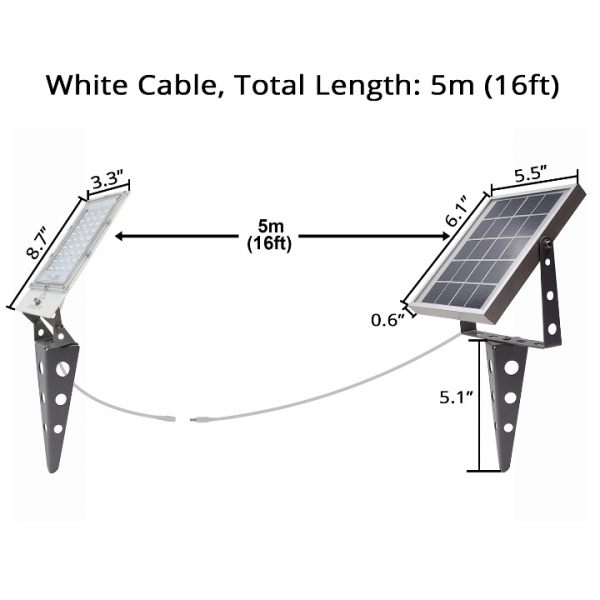 - Solar panel is separated from the light head with a 5m waterproof cord for flexibility in operating including indoor and outdoor installation.