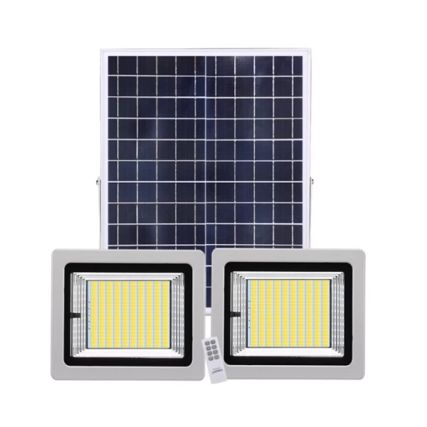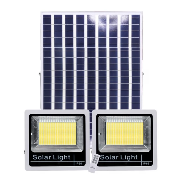 - Universal Security LED Solar Floodlight Twin Light with motion sensor is a high-quality energy-efficient and grid-independent lighting solution powered by solar energy.