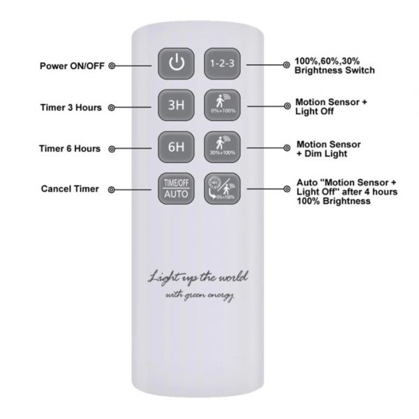 - Light Timing function with the duration of 3 or 6 hours with memory function. The light turns on at night automatically at the selected mode and turns off after chosen time: 3 or 6hrs.