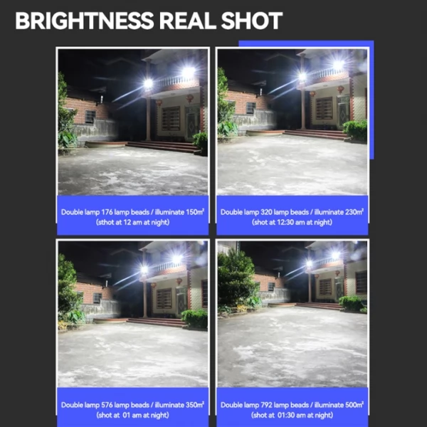 - Two separated independent LED Lighting Heads, linked to one solar panel, can be installed separately apart from each other.