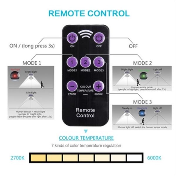 - Remote Control to adjust lighting colour temperature and change operation modes within 5-8m.