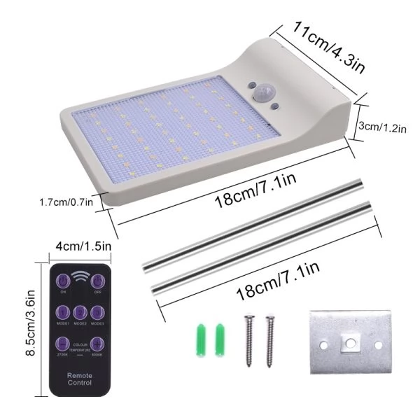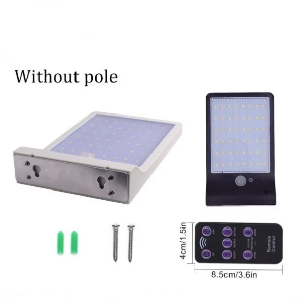 48 LED Outdoor Security Solar powered street lamp with PIR Motion Sensor and Remote Control is an advanced product with multiple features. The LED lamp is entirely operated by Solar Energy with efficient anti-scratch Solar Panel and powerful built-in rechargeable battery. The lighting product designed for outdoor use and does not require any additional electric wires or other sources. The Remote Control allows changing lighting colour temperature and lighting operating modes within 5-8 meters.