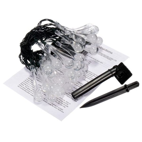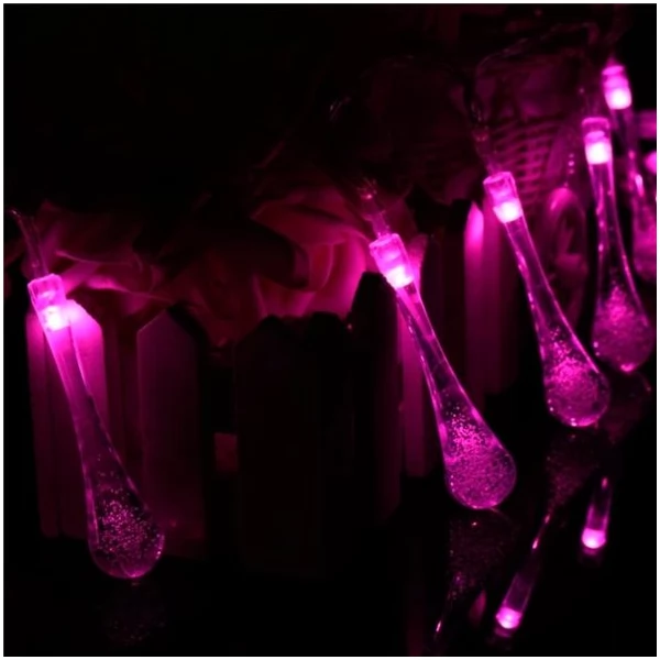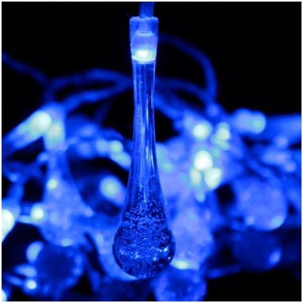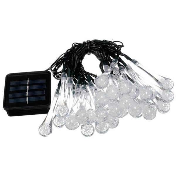 Solar Power Party Lights Raindrop Fairy String 30 LED Decoration for Christmas Xmas Wedding Birthday Party Backyard Garden House Trees energy efficient Solar Panel with pre-installed rechargeable battery Variety of colors.