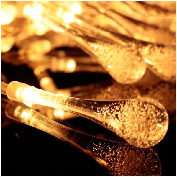 High quality bright Raindrop Fairy String Lights creates cozy ambiance around the house, garden or backyard. 30 LED Raindrop bulbs string powered with Solar Power Green Energy and does not require any electric wires or addition sources of power. Steady Bright lighting lets ones to create unique atmosphere without extra costs for electricity. The Party String of Lights has automatic light sensor which Turns the lights On automatically at night.