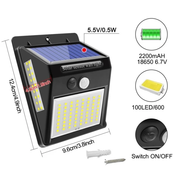 - Outdoor Bright 100 LED Solar Security Wall Light PIR Motion Sensor and wide lighting angle is an energy-efficient and grid-independent lighting products powered by Solar Energy.