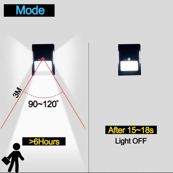 - Advanced security features including Motion Sensor with 90°~120°angle and short 3m range to avoid activating the light for a far distance motion.