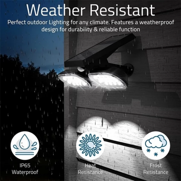- Dual spotlights design with independently adjustable light heads allows directing the lighting at multi-angle the way it is required for garden landscape or emergency pathway application.