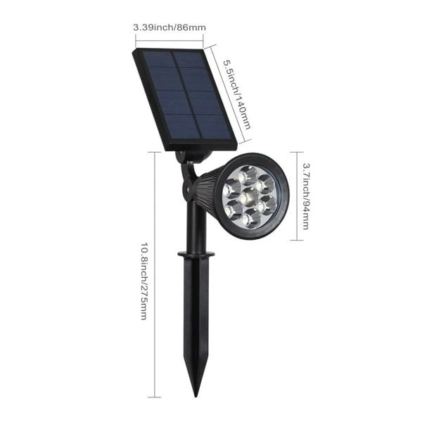 - Adjustable Constriction to improve usability and highlighting any landscape features: 90° adjustable light angle and 180° degree regulating Solar Panel angle.