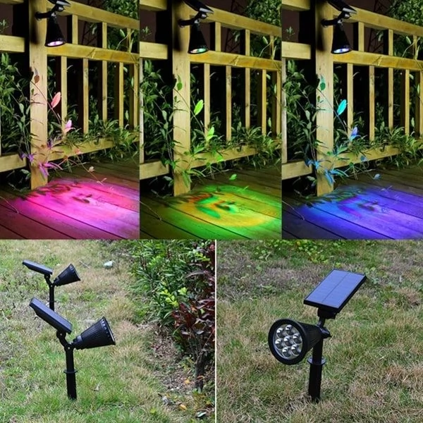 Bright Colour Changing 7 LED Solar Spot Light for Outdoor Garden Tree Landscape Decoration is a high-quality durable waterproof product with multiple features. The LED Spot Light is fully operated by Solar Energy with efficient Solar Panel and powerful built-in rechargeable Lithium battery. Adjustable light head delivers reliable long-lasting illumination to highlight any garden or landscape features including lawn, tree, sculptures etc. While the changeable angle of Solar Panel improves the sun exposure for better charging and long-lasting illumination.