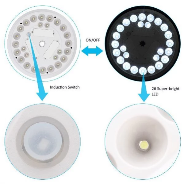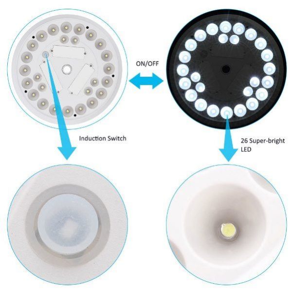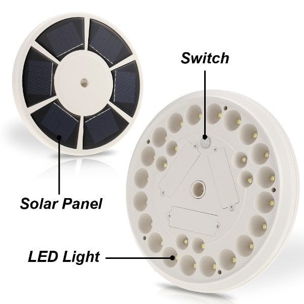 - BRIGHT: Six solar panels provide great energy for the lighting by absorbing the sunlight during the daytime. 26 brighter energy-efficient LED bulbs can provide enough illumination for the whole night.
