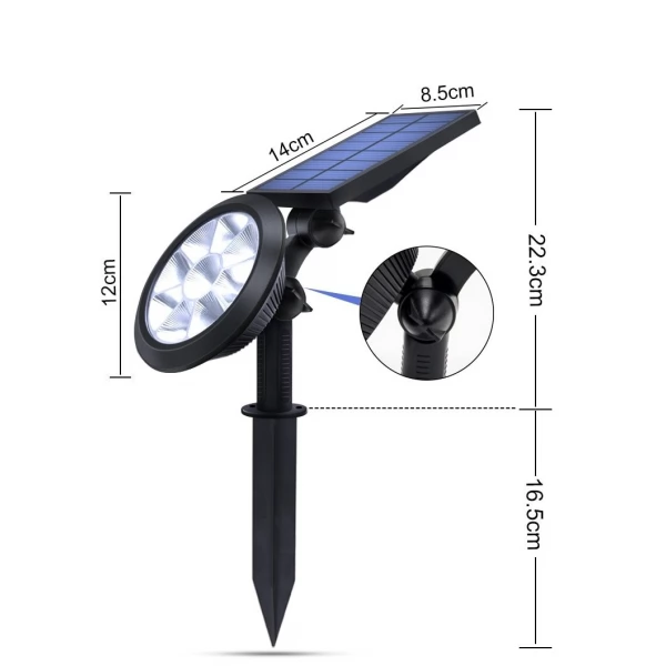 The solar powered garden spotlight delivers reliable long-lasting lighting and is ideal for maintaining casual or emergency lighting around the house, garage, driveway, garden, patios, side and backyard, aisles, stairs, entryway, path, fence etc.