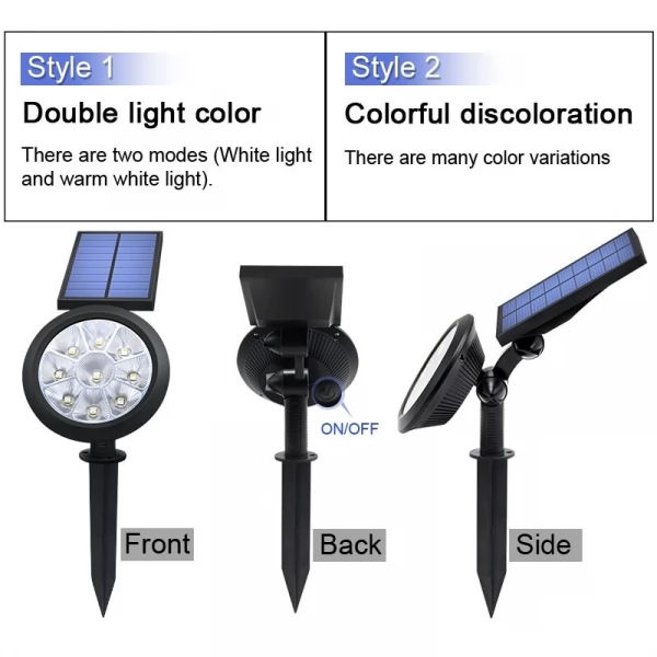 Outdoor Bright 9 LED Solar Garden Spotlight for Landscape Tree Decoration with Universal Wall or Ground Stake is a high-quality durable waterproof product with multiple features. Various Lighting colours. Adjustable angles of lighting and position of solar panel improve usability and provide more flexibility for application for home, garden, backyard, stairs and various commercial purposes.