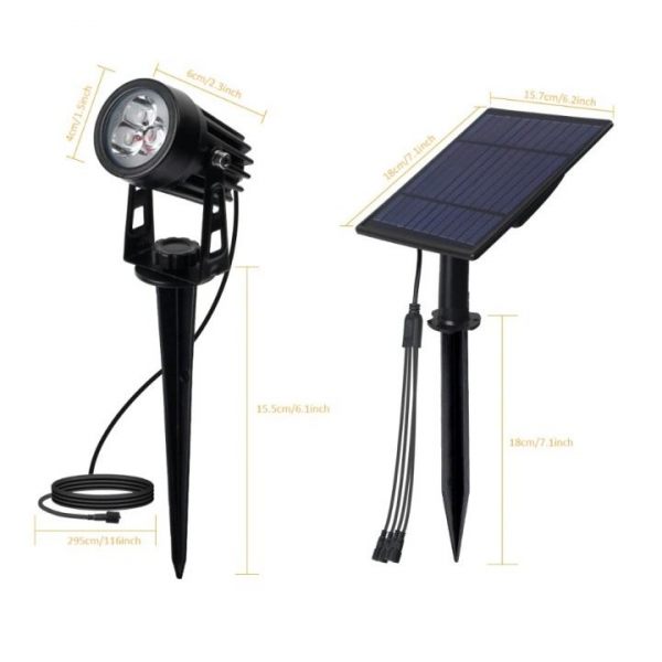 - A separate Solar Panel provides more flexibility in the installation and operation of the product with a 3-meter cable to each head for the best light coverage.