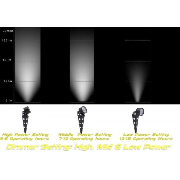 - Adjustable lighting heads angle for highlighting any landscape features.