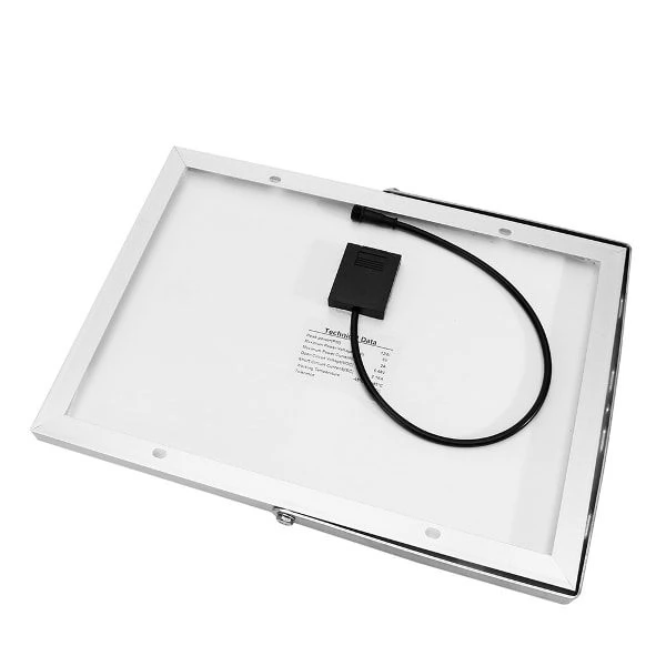 - Detached Solar Panel with improved Energy Conversion rate shortens the charging time of the battery even at rainy or cloudy days. The adjustable fitting allows maximizing the sun exposure during the day.