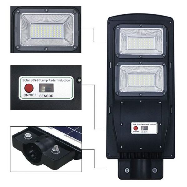 - Powerful LED Solar Street Light with Radar Sensor is fully solar powered lighting product. Solar Panel should be installed in a well-lit area where it can receive maximum straight sunlight during daytime. Any cover that shades the Solar Panel will affect its ability to absorb sunlight and as a result, decrease a device’s performance.