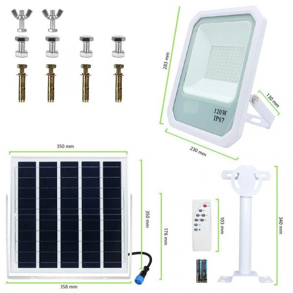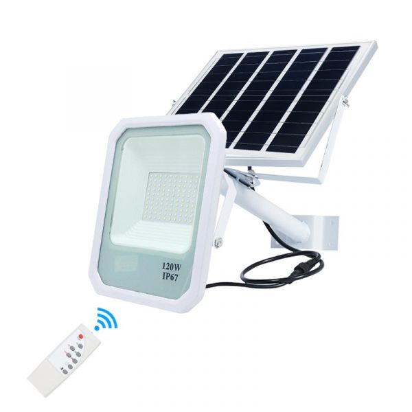 Solar Street Flood Light Commercial Grade High Power LED 120W 150W 200W is a high-quality weather-resistant solar light suitable for residential and industrial applications. Cast Aluminium in combination with tempered glass provides extra protection while high brightness LED with a wide 140-degree beam angle takes care of superior illumination. Smart Automatic Light Control System & Intelligent Remote control with time settings & brightness level adjustments make the product maintenance-free and convenient for various purposes & environments