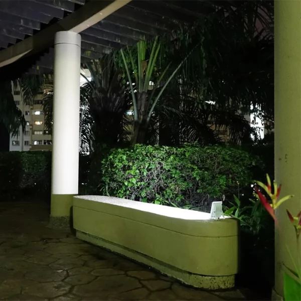 - Stylish White and Grey finish makes the unit discrete during the day. Designed for modern homes, lighting up entrance, gardens, yards, pools and recreation areas.