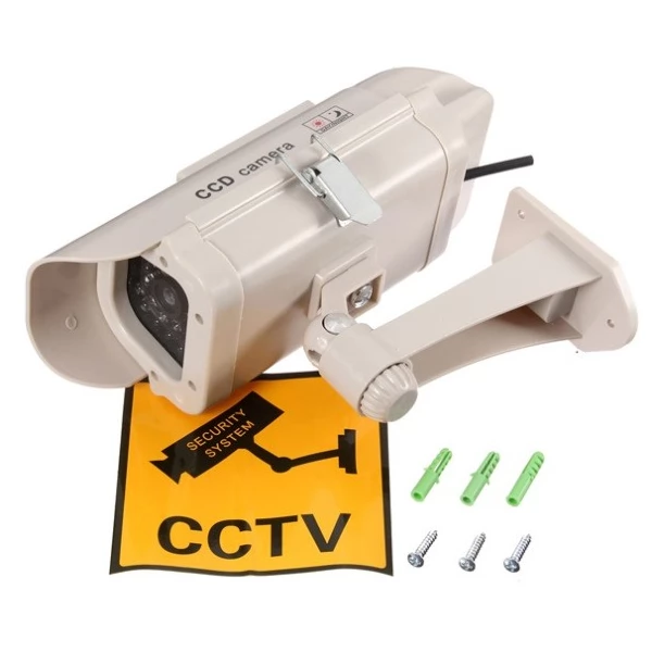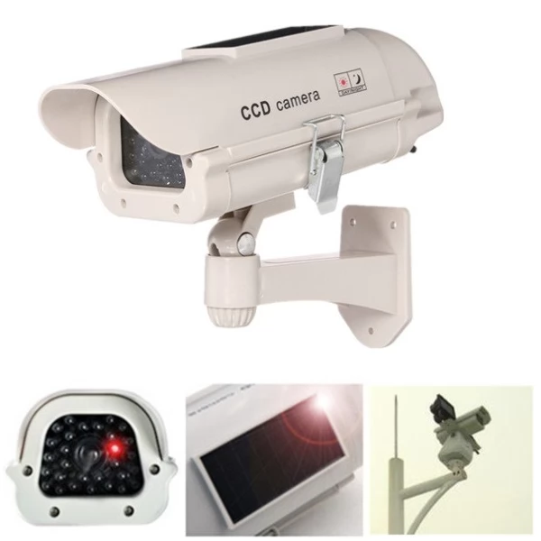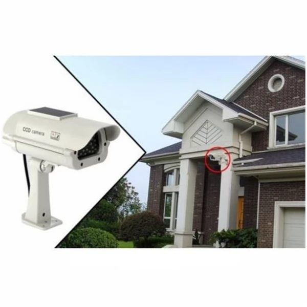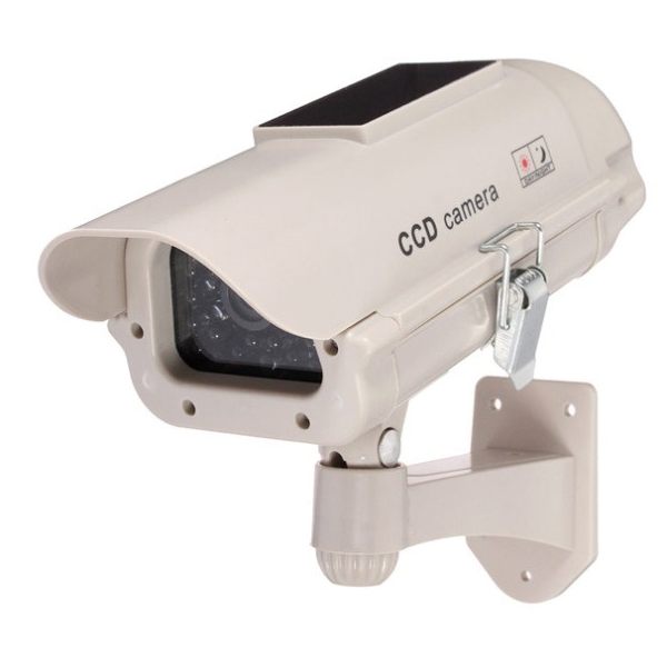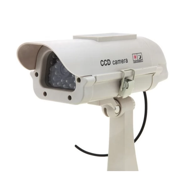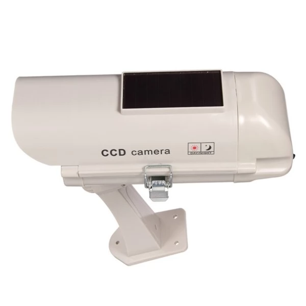 Solar Security Imitation CCTV Camera with Blinking Red LED is fully energy-independent inexpensive property security solution powered by solar energy. Realistic appearance makes it look exactly like the real CCTV security camera without the respective expenses. The solar fake camera is the most affordable and effective maintenance-free way to protect property including home, shop and any other premises.